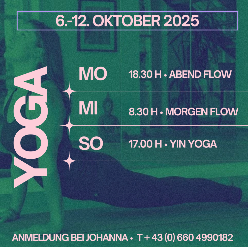 Anmeldung bitte rechtzeitig telefonisch oder per Whats App / SMS bei Johanna unter +43 660 4990182. Privatstunden gerne auf Anfrage.